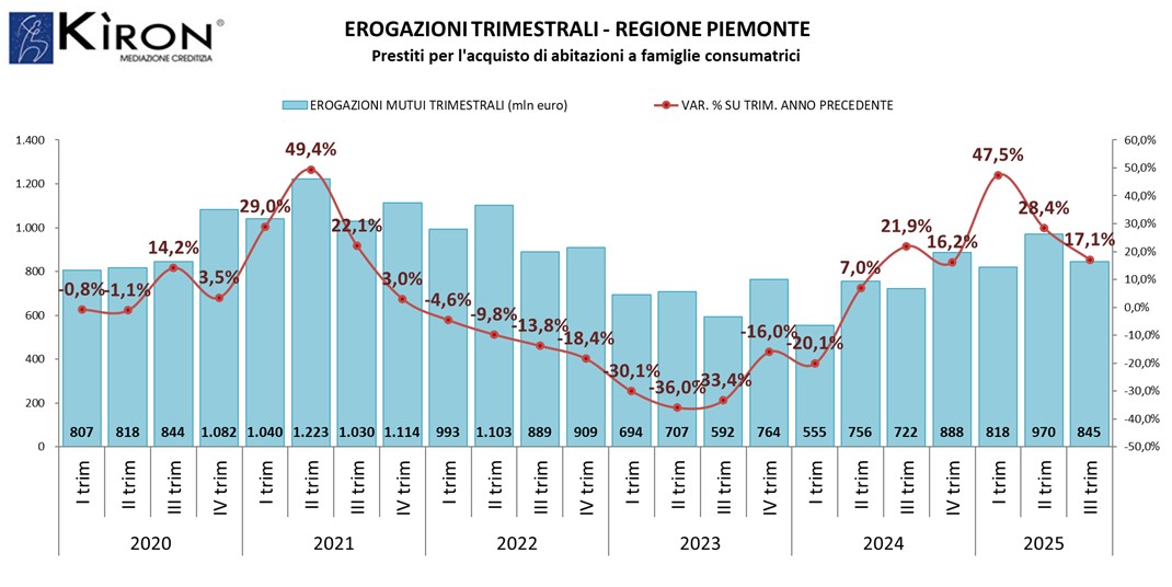 Torino ha erogato volumi per 535,9 mln di euro, la variazione sul trimestre è pari a +20,1%. I primi nove mesi dell’anno hanno evidenziato volumi per 1.664,9 mln di euro e una variazione pari a +31,3%.