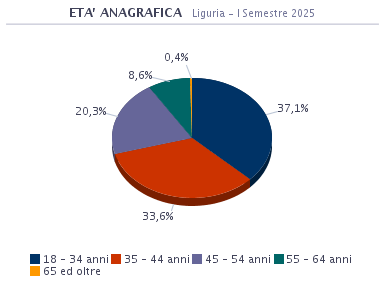 L’analisi per fasce d’età mostra che il 37,1% della popolazione ricade nella fascia più bassa, 18 – 34 anni; il 33,6% ha un’età compresa tra 35 e 44 anni; il 20,3% ricade nei 45 – 54 anni; l’8,6% si colloca nella fascia 55 – 64 anni; lo 0,4% ricade nella fascia più alta, 65 ed oltre.