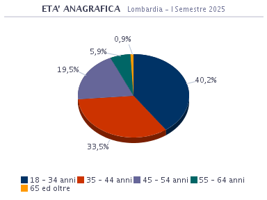 L’analisi per fasce d’età mostra che il 40,2% della popolazione ricade nella fascia più bassa, 18 – 34 anni; il 33,5% ha un’età compresa tra 35 e 44 anni; il 19,5% ricade nei 45 – 54 anni; il 5,9% si colloca nella fascia 55 – 64 anni; lo 0,9% ricade nella fascia più alta, 65 ed oltre.