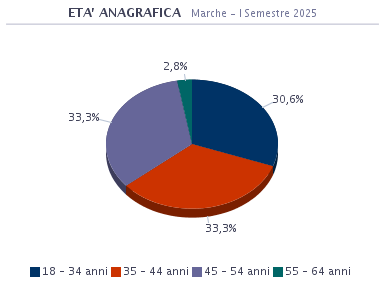 L’analisi per fasce d’età mostra che il 30,6% della popolazione ricade nella fascia più bassa, 18 – 34 anni; il 33,3% ha un’età compresa tra 35 e 44 anni; il 33,3% ricade nei 45 – 54 anni; il 2,8% si colloca nella fascia 55 – 64 anni.