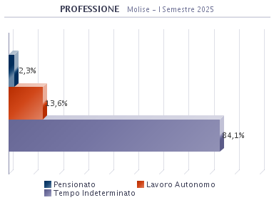 Dall’analisi della professione del mutuatario emerge che la sicurezza economica è tra gli elementi fondamentali richiesti dagli istituti di credito per erogare un finanziamento. Tale caratteristica identifica l’86,4% del campione (dipendenti a tempo indeterminato e pensionati), a fronte del 13,6% di chi ha un contratto di lavoro flessibile (liberi professionisti/lavoratori autonomi e titolari d’azienda) e dello 0,0% di lavoratori a tempo determinato.