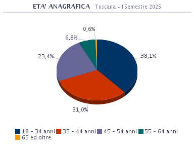 L’analisi per fasce d’età mostra che il 38,1% della popolazione ricade nella fascia più bassa, 18 – 34 anni; il 31,0% ha un’età compresa tra 35 e 44 anni; il 23,4% ricade nei 45 – 54 anni; il 6,8% si colloca nella fascia 55 – 64 anni; lo 0,6% ricade nella fascia più alta, 65 ed oltre.