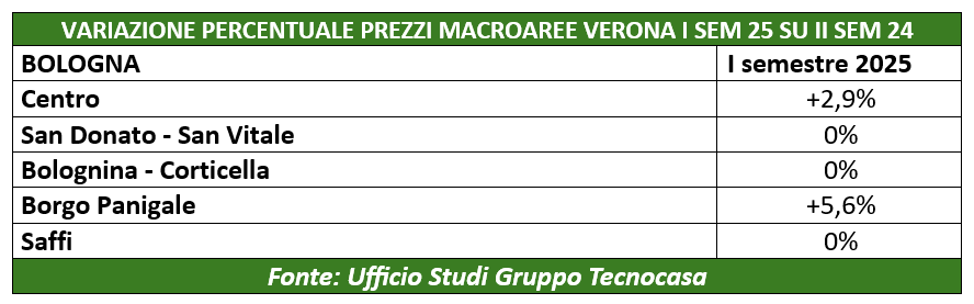 Secondo le ultime analisi dell’Ufficio Studi Gruppo Tecnocasa, nei primi sei mesi del 2025 i prezzi delle case di Bologna hanno messo a segno un aumento dei valori dell’1%.