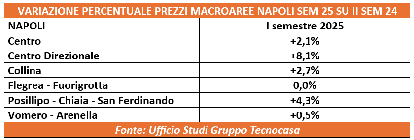Secondo le ultime analisi dell’Ufficio Studi Gruppo Tecnocasa, nella prima parte del 2025 i valori immobiliari di Napoli hanno messo a segno una crescita del 2,6%.