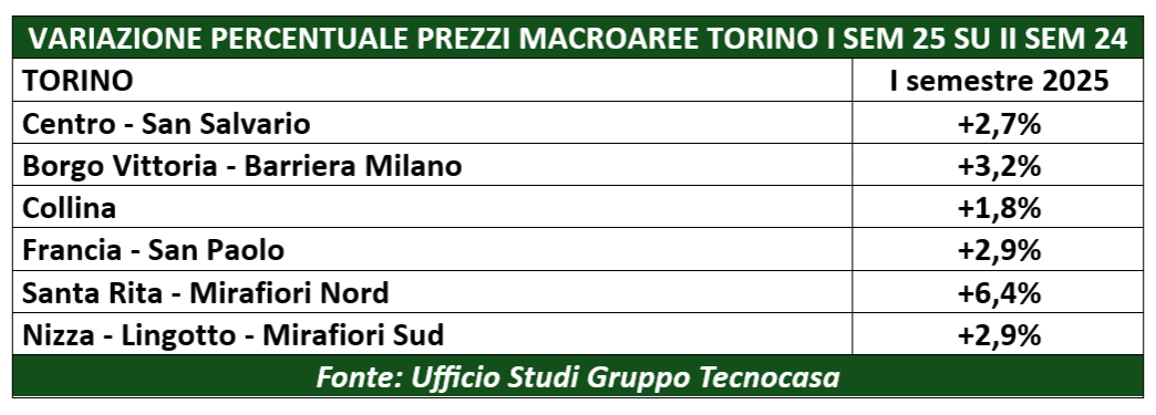 Secondo le ultime analisi dell’Ufficio Studi Gruppo Tecnocasa, nella prima parte del 2025 i valori immobiliari di Torino hanno messo a segno una crescita del 3,3%.