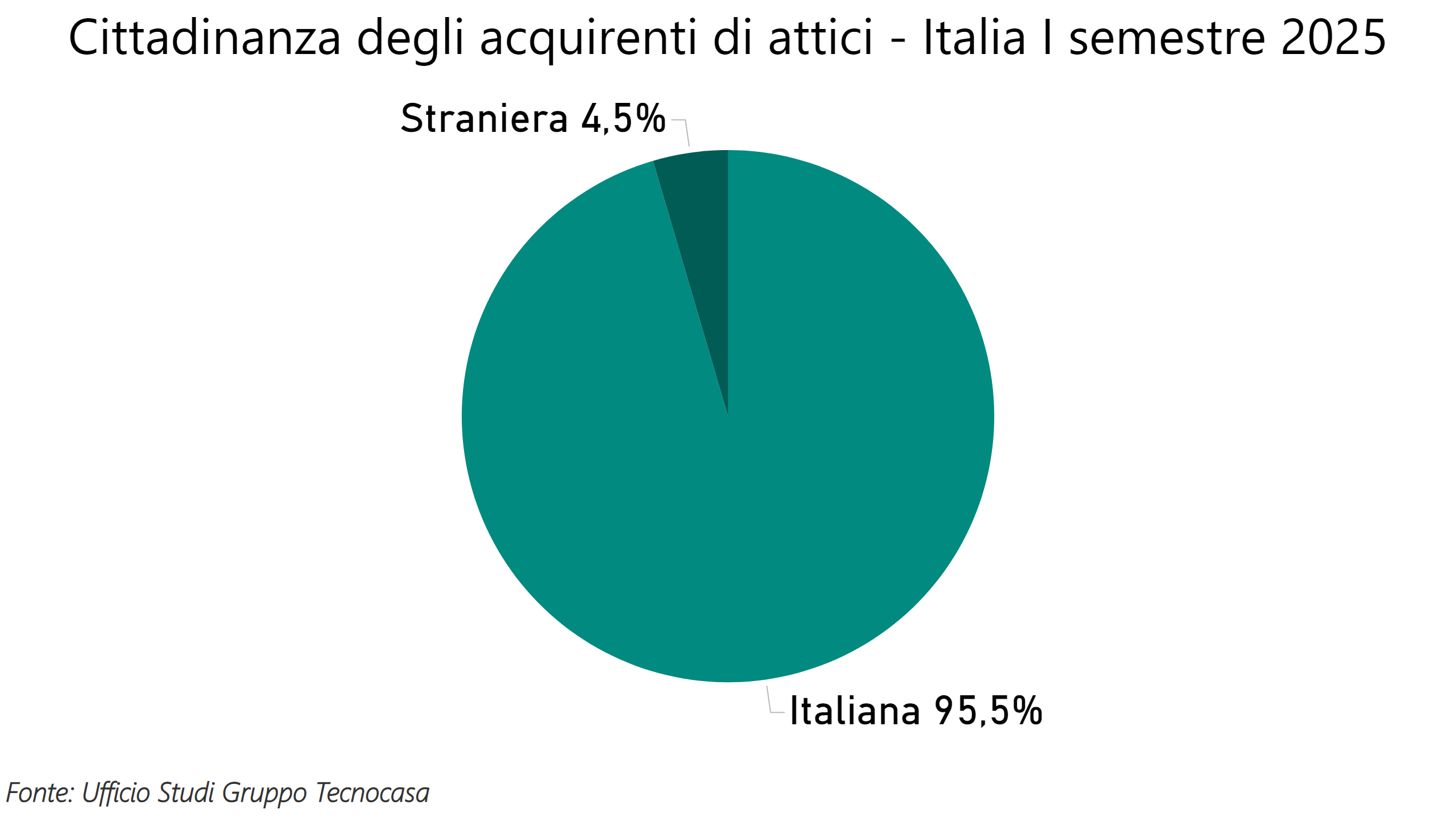 Per quanto riguarda la cittadinanza degli acquirenti di attici, l’analisi dell’Ufficio Studi ha messo in evidenza che nel 95,5% dei casi ad acquistare sono persone residenti in Italia, mentre nel 4,5% dei casi gli acquirenti sono stranieri, percentuale quest’ultima in lieve calo rispetto all’anno precedente.