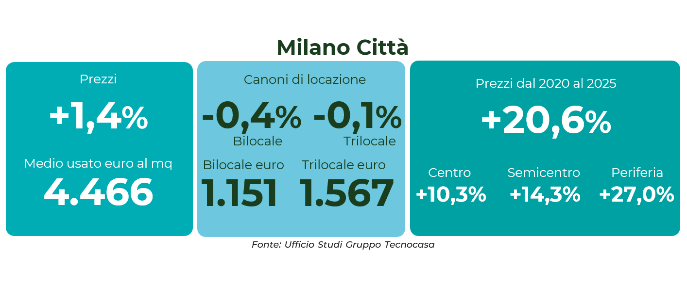 Secondo l’Ufficio Studi Gruppo Tecnocasa, nella prima parte del 2025 i valori immobiliari di Milano hanno messo a segno un aumento dell’1,4%.